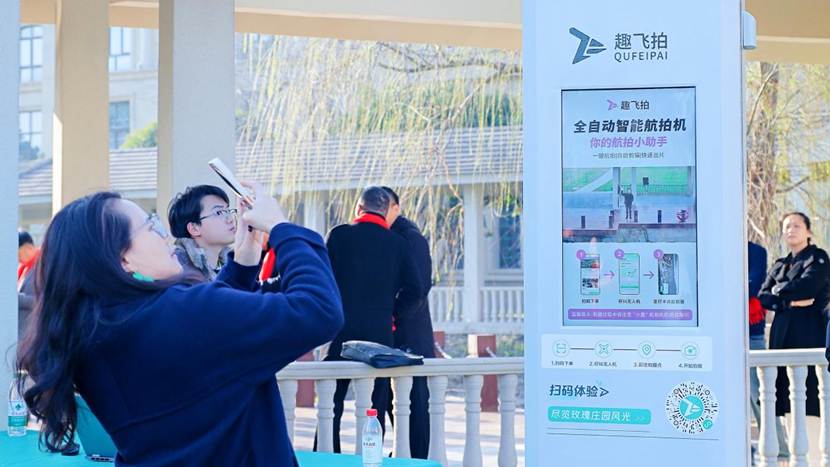 活动现场,江苏趣飞拍科技有限公司将其共享无人机模式拓展至太仓玫瑰庄园酒店,为游客带来了全新的空中视角体验。游客只需通过手机完成“扫码、登陆、下单、拍摄”四步操作,即可操控共享无人机。设备在预设安全拍摄点自动启航,以渐远、环绕等多种模式完成拍摄,从起飞到成片仅需5分钟,花费几十元就能获得高清照片与视频,还可享受“一键成片”免费下载服务。