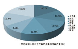 长三角地区凭借着较好的整车和零部件制造业基础,成为我国汽车产业集群的典型代表。长三角是我国汽车产业发展规模最大、经济发展最好的地区,集中了中国诸多知名汽车公司,如上汽集团、上海通用、上海大众、东风悦达起亚和吉利公司等。除整车公司外,长三角地区还拥有完整的零部件供应体系,无论是产业集群程度还是产业集中程度都在中国居于首位,产业综合实力强。长三角区域内资金密集、技术密集,龙头企业、合资企业、民营企业形成发展合力,使得长三角成为最具活力的产业集聚地。长三角地区拥有国内目前最齐全和完善的整车生产体系,2013年、2014年全年以及2015年前十月份长三角地区汽车产量分别占全国汽车产量的16.8%、16.7%和16.2%。长三角地区的汽车整车生产体系已经比较成熟,具备较强的综合竞争力。