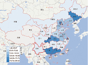 2015年前十月全国汽车产量分布(单位:万辆)
