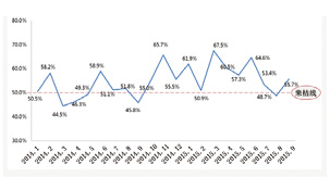 根据“中国汽车经销商库存预警指数调查”,2015年9月库存预警指数为55.7%,比8月份上升了7个百分点,处于警戒线水平以上。自2014年10月以来,该指数除2015年8月份以外,其它月份均高于警戒线水平,特别是出现了连续10个月高于警戒线水平的现象,表明现阶段我国汽车销售出现一定困难,汽车市场需求收缩,经销商库存和经营压力持续加大。