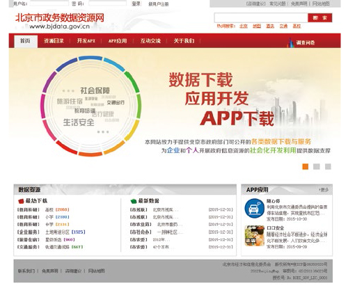 北京市政府数据资源网(www.bjdata.gov.cn,见图1)作为“大数据”惠民的一项重要探索,致力于提供北京市政务部门可公开数据的下载与服务,为企业和个人开展政务信息资源的社会化开发利用提供数据支撑,推动信息资源增值服务业的发展以及相关数据分析与研究工作的开展。