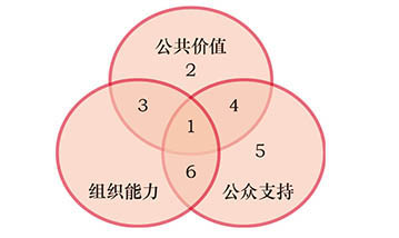 图中的5区是公众支持圈不与公共价值圈、组织能力圈相交的部分,表示公众认同出现偏差,决策虽受到广泛支持,但缺乏公共价值,组织也无能力实施,只是公众梦想而不能成为组织行动。