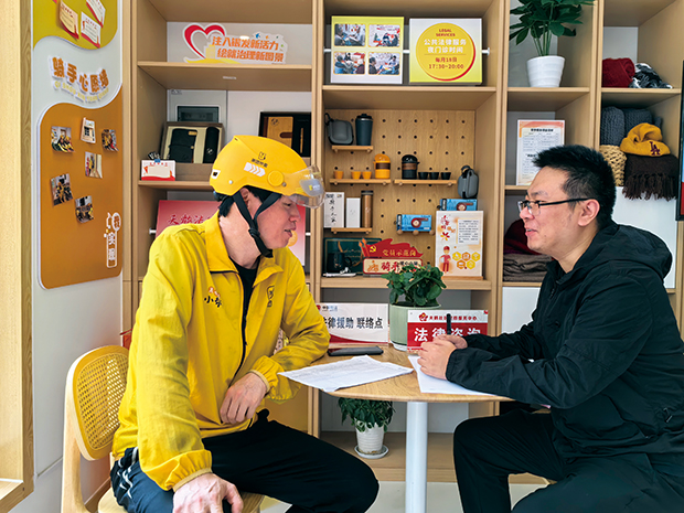 江阴市“骑手之家”法律援助联络点值班律师接待“骑手”咨询 江阴市司法局供图