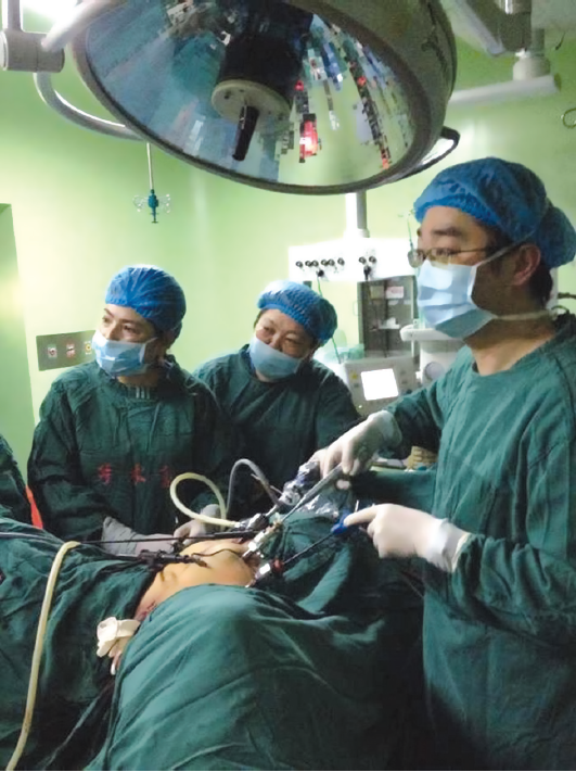 随着他的到来,克州人民医院的妇科腔镜水平得到了突飞猛进的发展。他是江苏省首批获得国家四级内镜资质的腔镜医生,来到克州人民医院以后,了解到妇科尚未独立开展腔镜手术,原先购买的器械尘封多年尚未使用,便因地制宜,克服困难,带领全科医生一起开展这门手术。在一个月不到的时间里,利用现有条件开展了腹腔镜输卵管切除、卵巢囊肿剥除、子宫肌瘤剜除、次全子宫切除、全子宫切除术等二十几台手术,诊断和处理了宫角妊娠、结核性腹膜炎、巨大子宫肌瘤等一些疑难疾病。在他的带领下,全科医生热情高涨,争相学习技术,抢着上台手术,主动向患者、朋友宣传腹腔镜手术的优点。功夫不负有心人,不到一个月的时间,就由科室的赛力古主任、申帅医生和我三人独立完成了妇科第一例宫外孕手术!