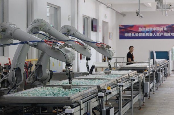 “我们在保留手工扎结传统工艺的基础上,融合了计算机视觉、深度学习等前沿技术,构建出‘手工扎花个性化—机器人执行—数字管理’的一体化系统,既守住非遗的‘魂’,又解决传统生产效率低、质量不稳定的难题。”江苏华艺服饰有限公司扎染事业部总经理景小连介绍。